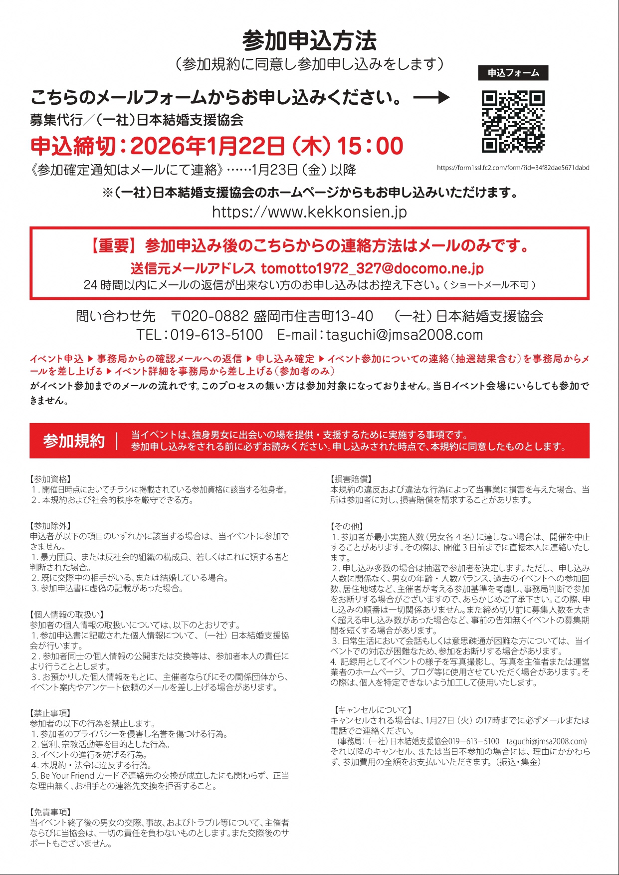 参加費:男性1,000円 女性1,000円 |