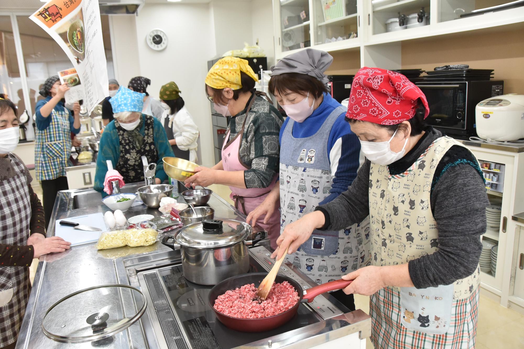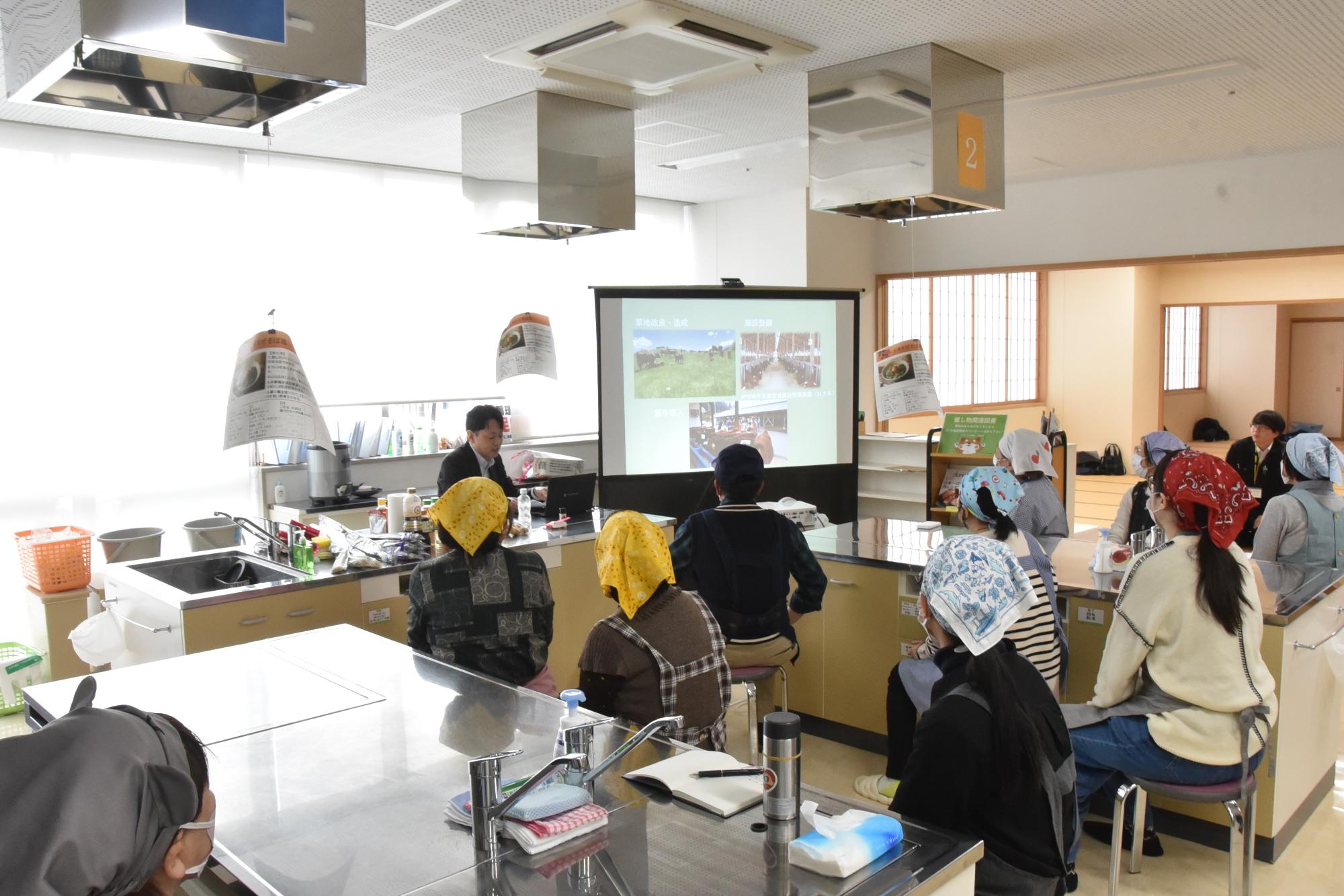 2月25日に花輪市民センターを会場に、令和7年1月に地理的表示(GI)登録された、本市が誇るブランド牛「かづの牛」の特長や美味しさなどを学ぶ、お肉博士の料理教室「うめ~!かづの牛」が開催されました。お肉検定の最高位資格「お肉博士1級」を持つ秋田県畜産農業協同組合鹿角支所長の湊新吾氏が、かづの牛の歴史や魅力について講演しました。 その後、かづの牛のひき肉を使用した「台湾風まぜそば」の調理実習が行われ、参加者は、講師からかづの牛の旨味を最大限に引き出すための火の通し方や味付けのコツを教わりながら、グループ同士で協力し合って調理を行い、鹿角の食の魅力を五感で楽しんでいました。
