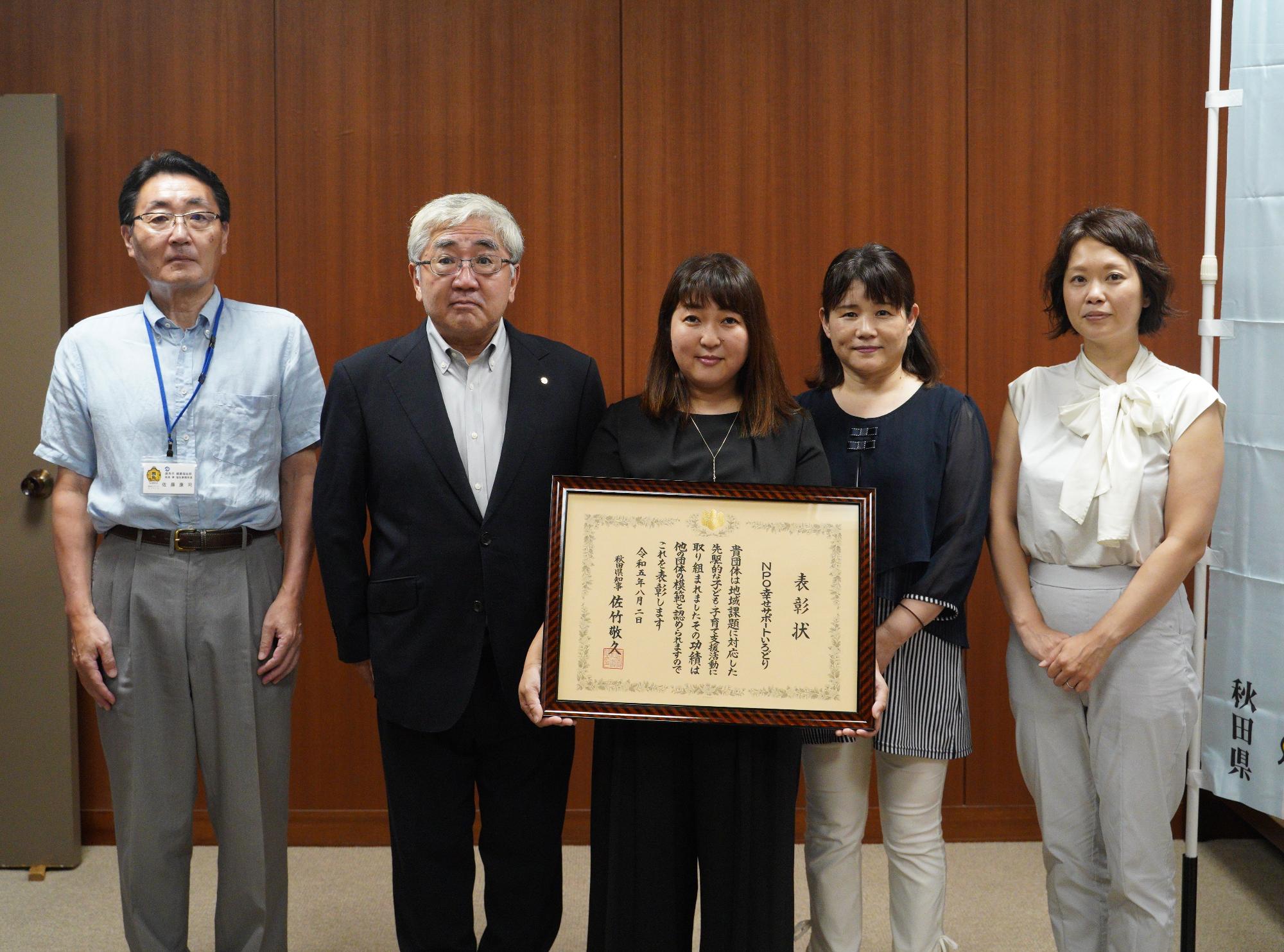 NPO幸せサポートいろどりが「秋田県子ども子育て支援知事表彰」を受賞し、8月7日、市長に受賞を報告しました。